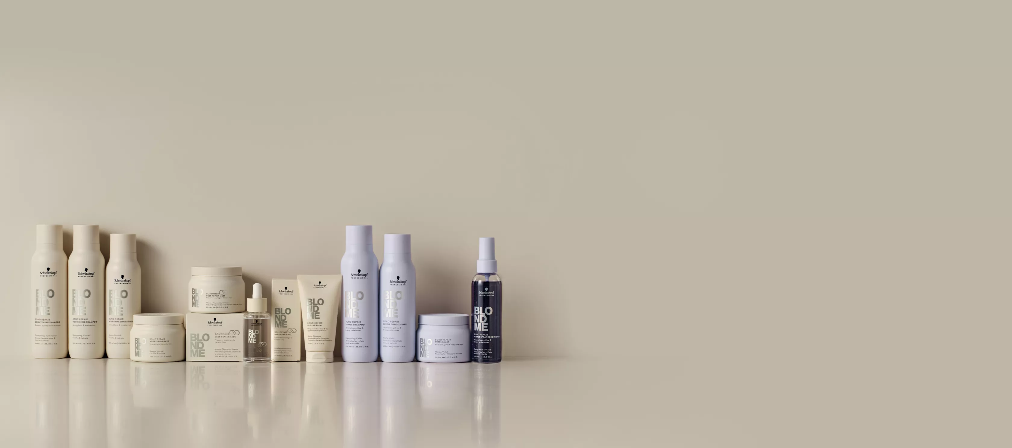 BLONDME includes a full selection of care products designed for professional use in-salon or at home. These formulations are made to work independently or together..